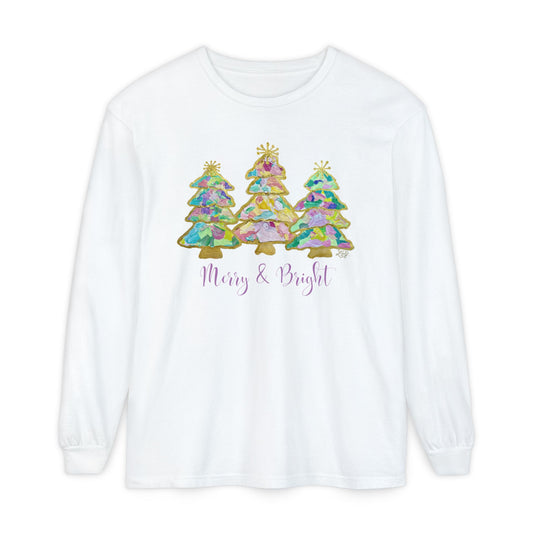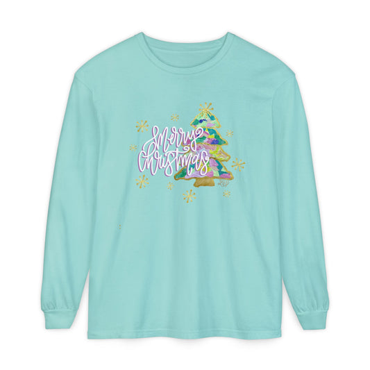 Painted Colorful Merry Christmas Tree Long Sleeve T-Shirt-Liz Cockrell Original Artwork