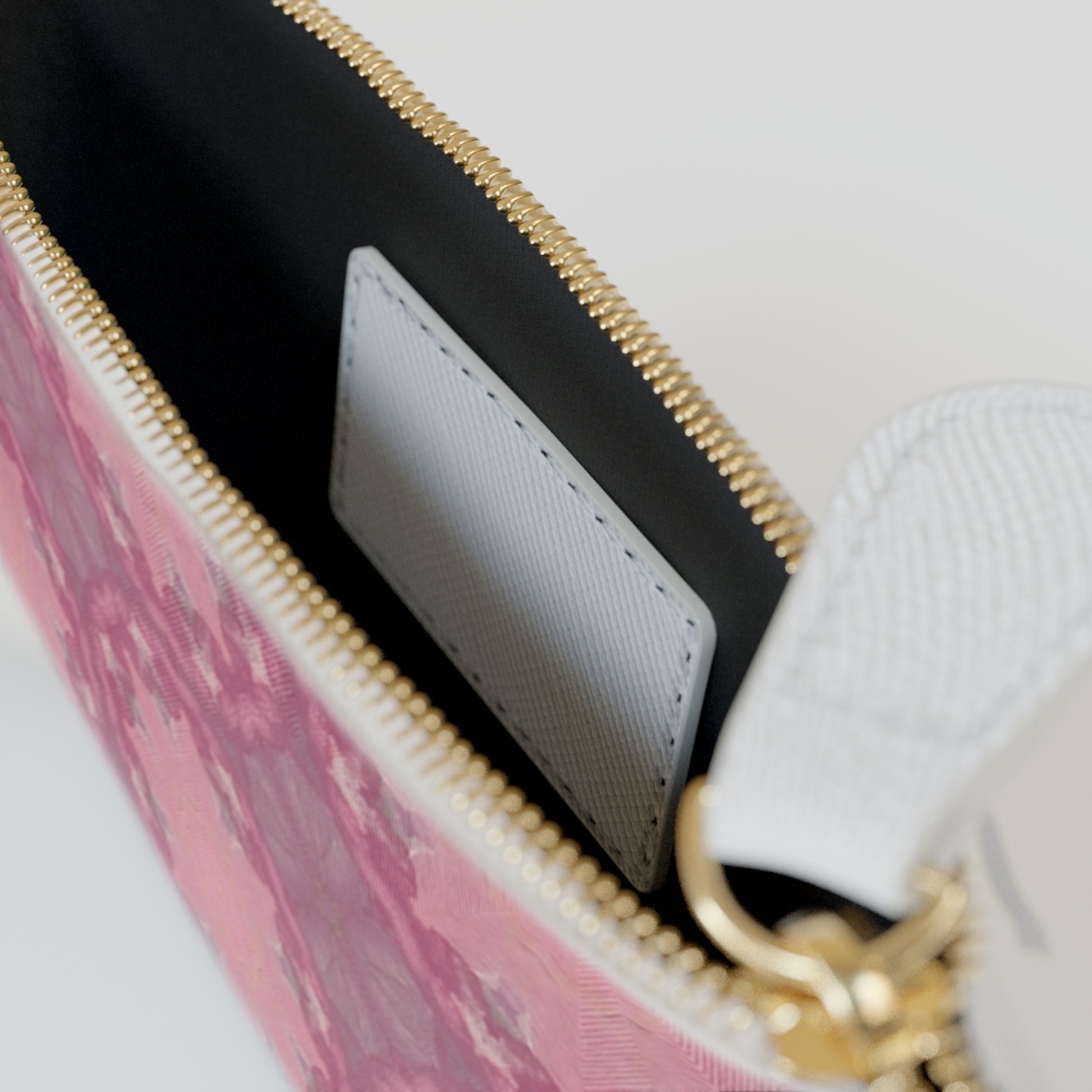 Designed to be chic and highly portable, this mini personalized clutch bag is made for the fashionista on the go. It can hold everyday essentials such as a wallet or keys. It features a zip fastener and it is made of vegan, cruelty-free leather that can accommodate your custom designs on both sides.