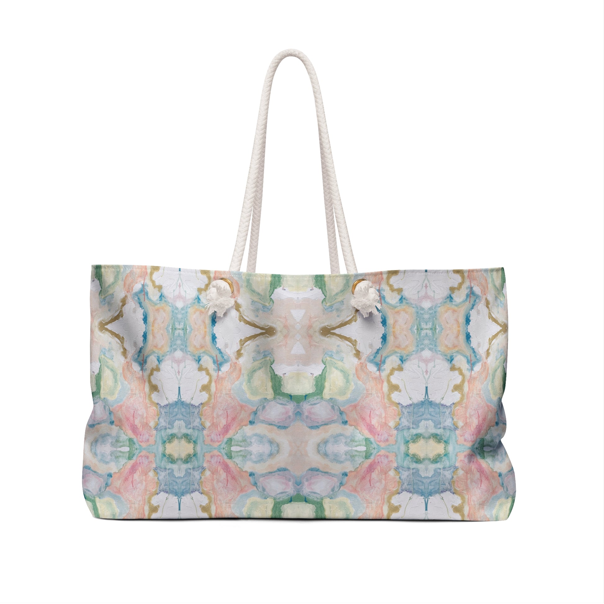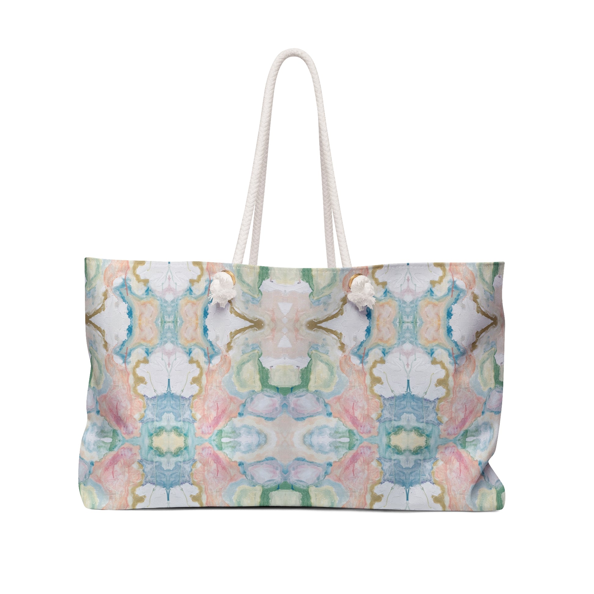 Our oversized Weekender Tote is perfect for your weekend at the beach or in town. The wide-mouthed, durable bag holds a generous amount of personal items and is easily held by its thick rope handles.