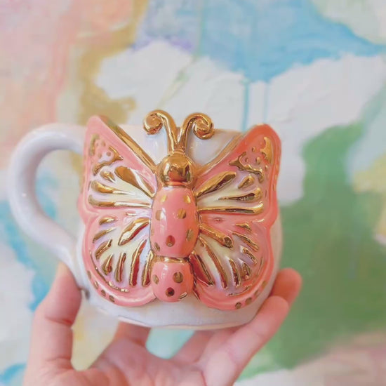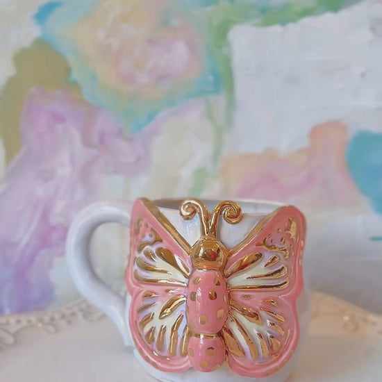 Coral Butterfly Mug with Gold Luster