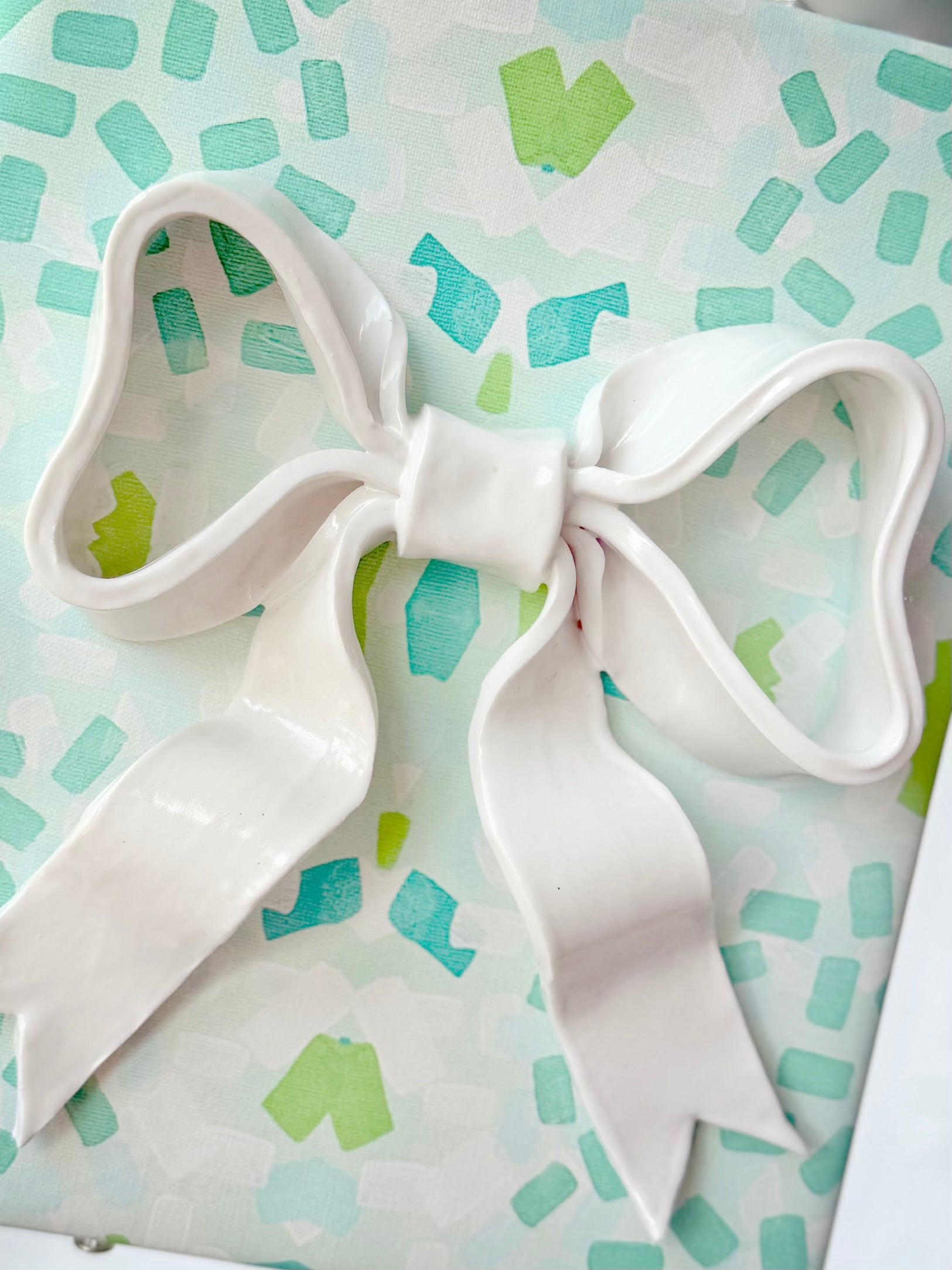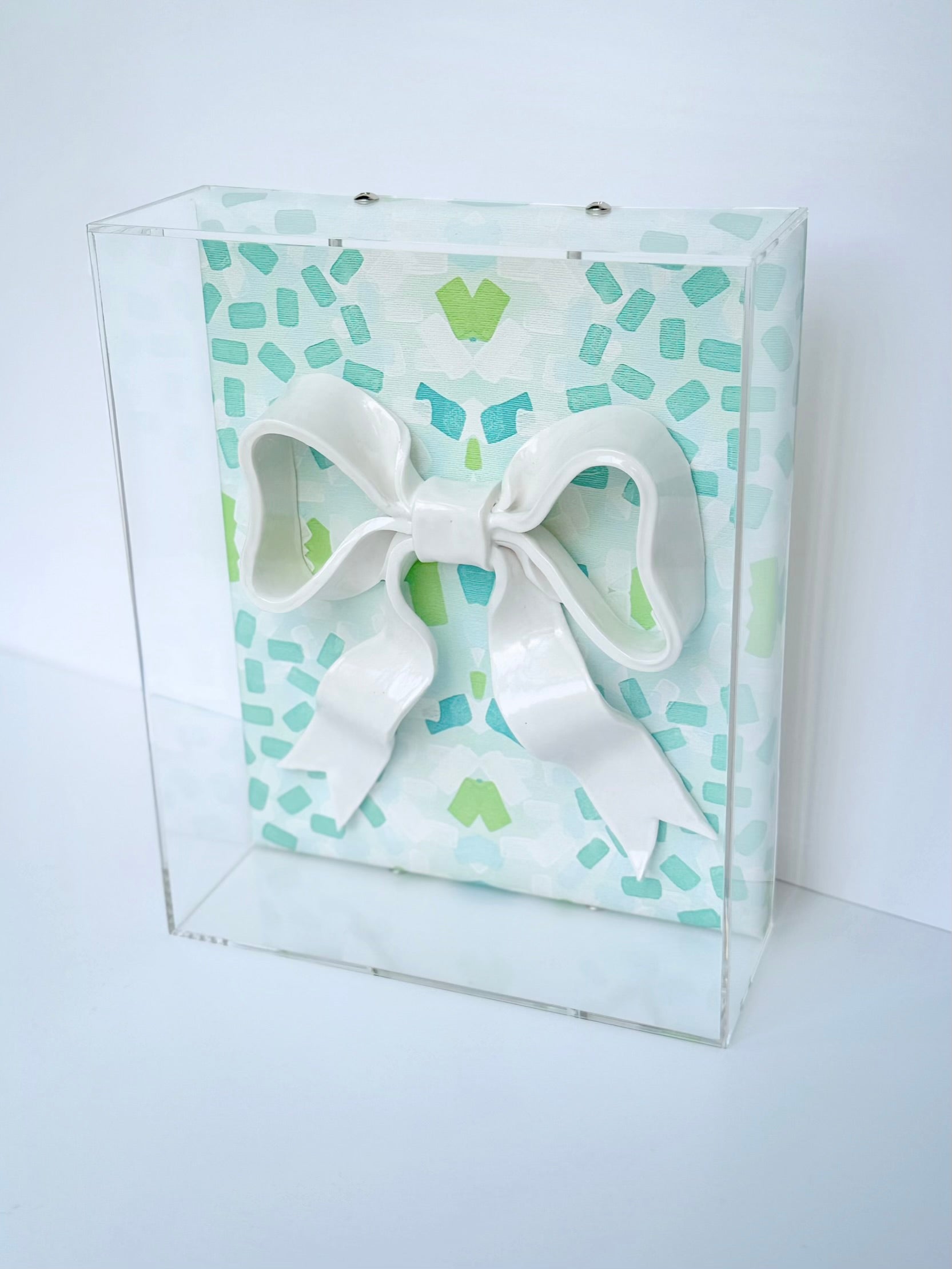 8x10 Handmade Porcelain Bow framed in 3” acrylic shadow box