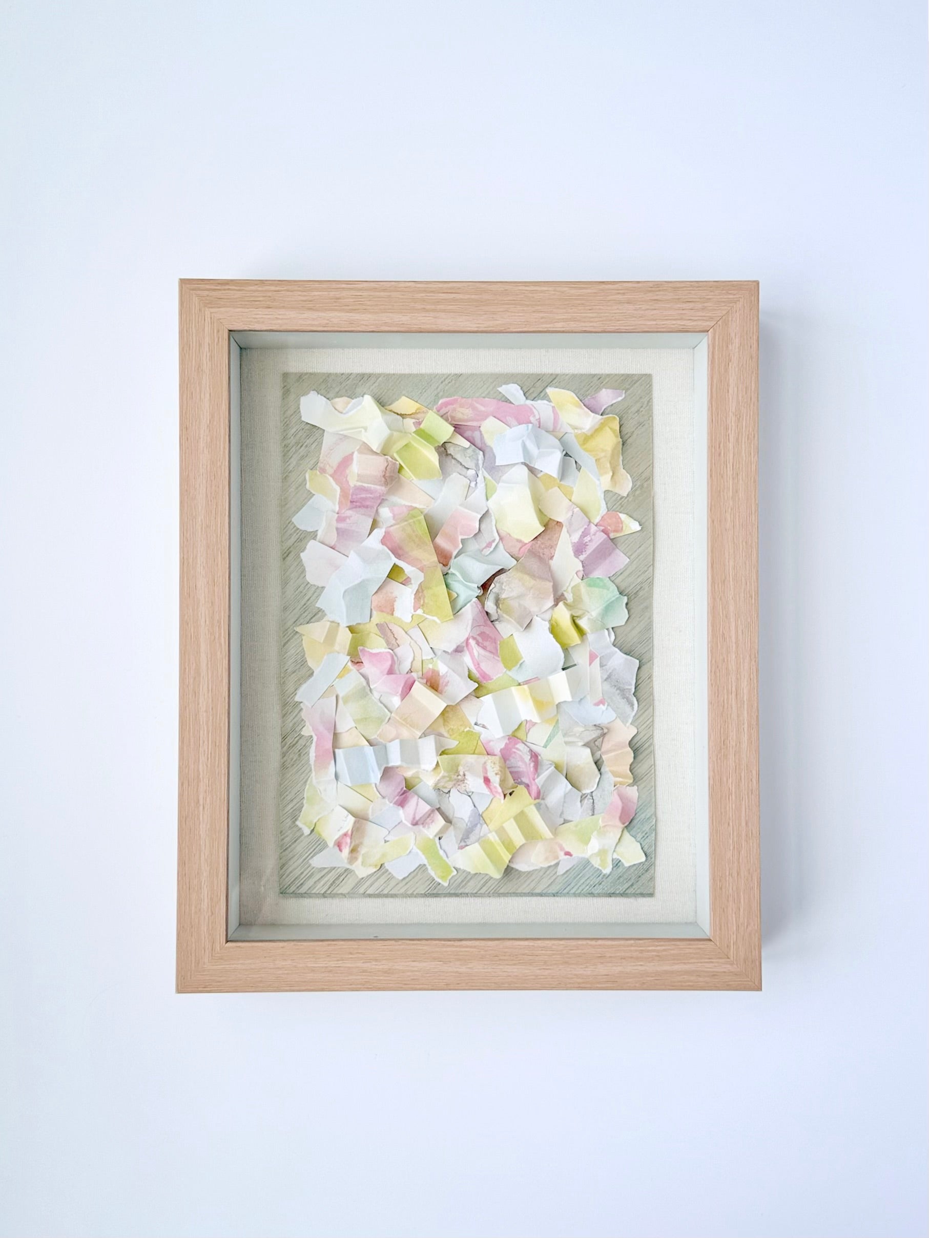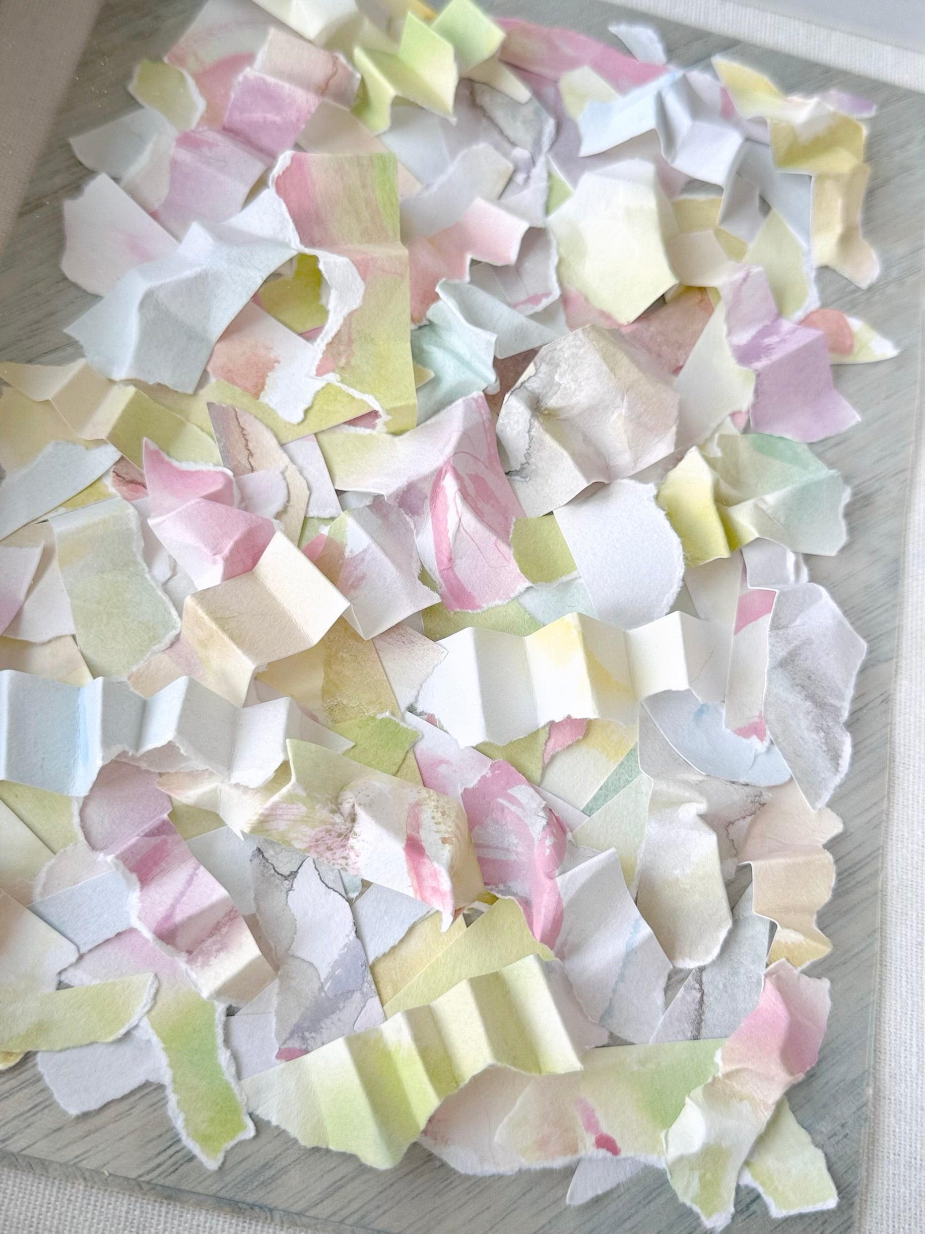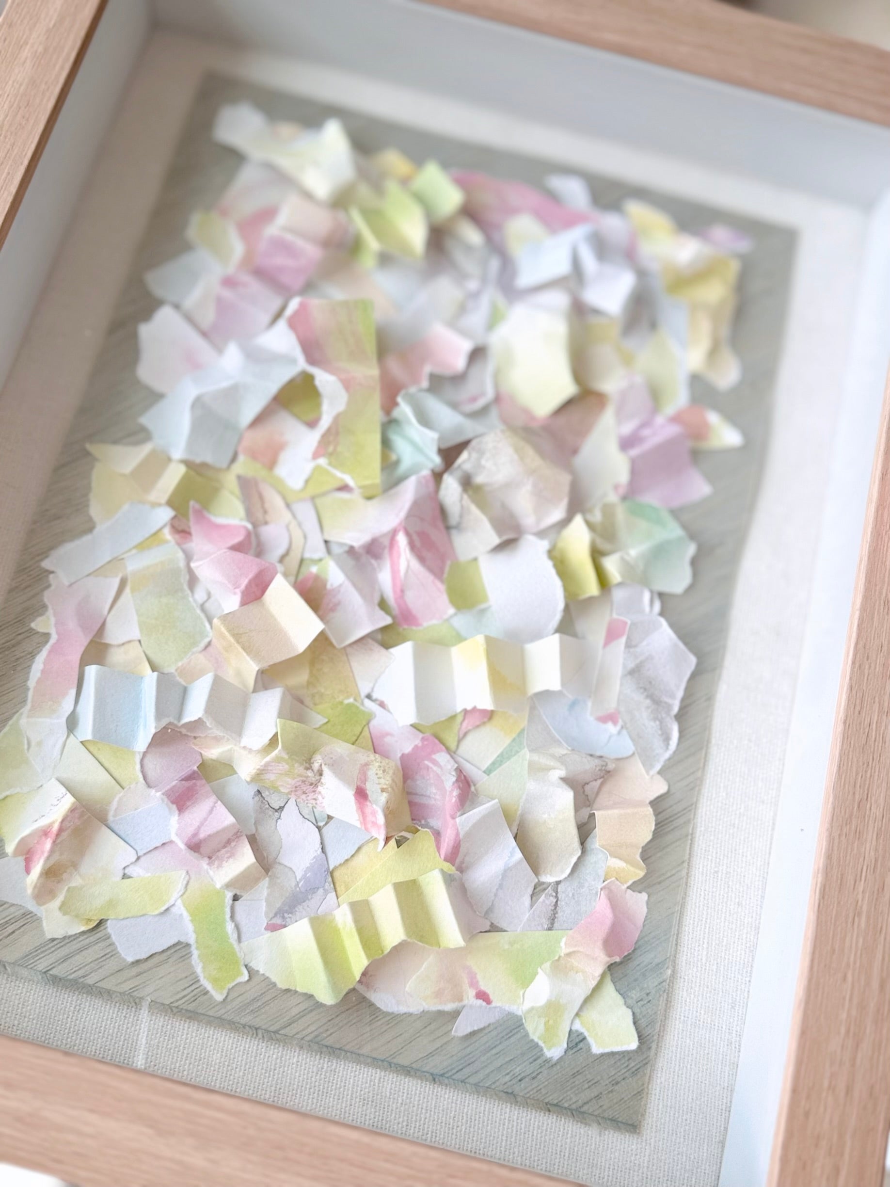 Bring home imaginative, alluring mixed media collages meticulously crafted by Liz! These unique works of art are crafted from original acrylic ink paintings, creatively and intentionally ripped, folded and woven into the work to evoke emotion of growth and new beginnings.