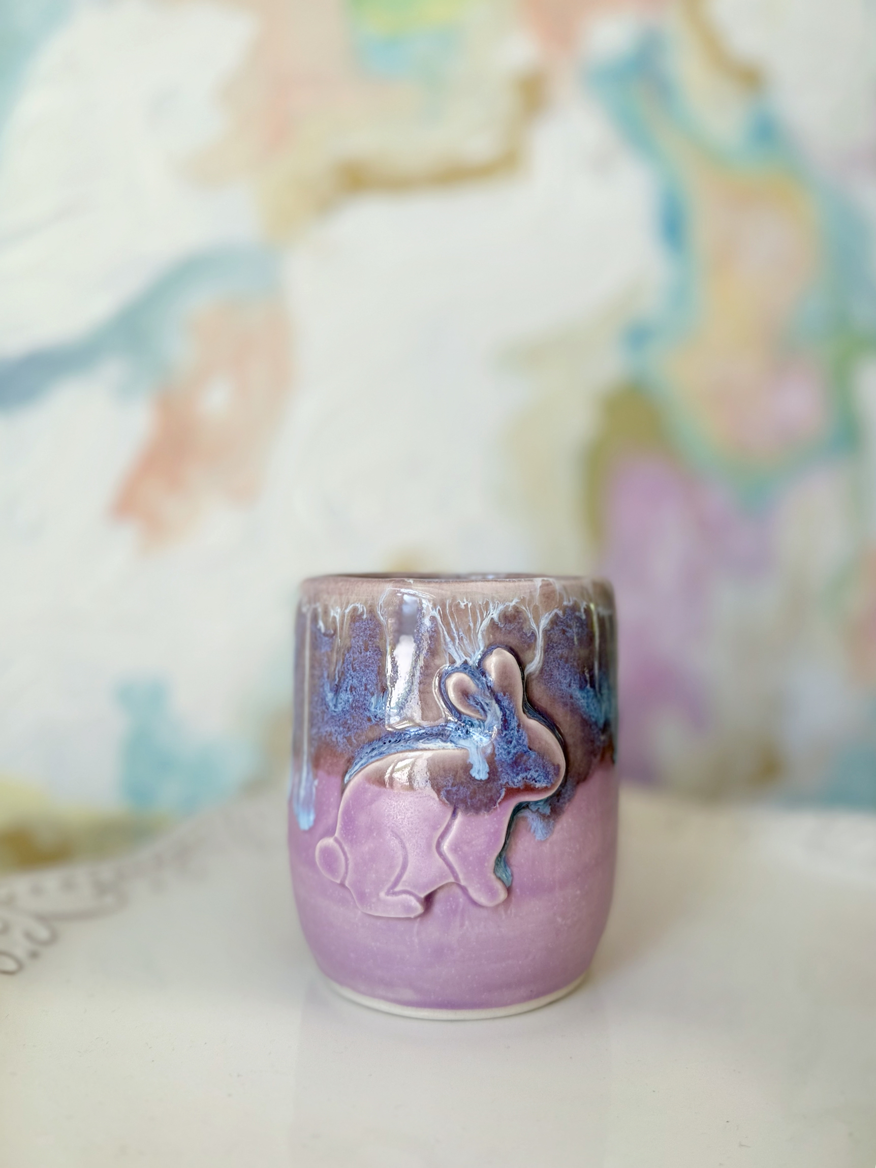 Lilac Bunny Tumbler II with Drippy Glaze